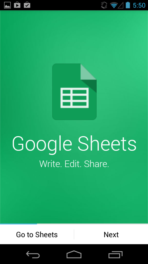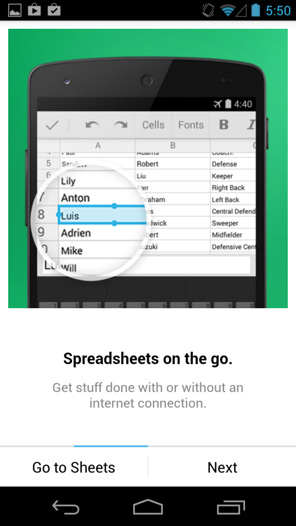 Google Sheets on Android First Time User Experience