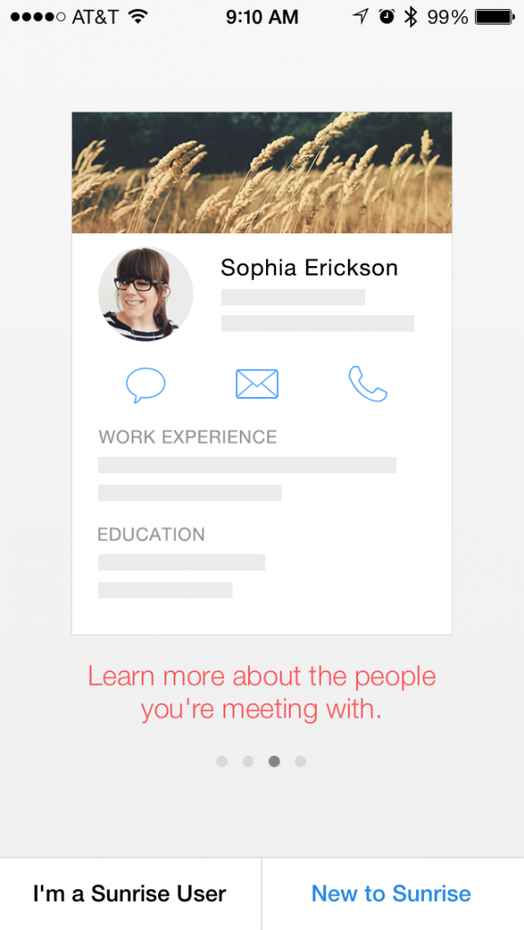 The above screens show my first time user experience with Sunrise, the calendar integration app for iOS.