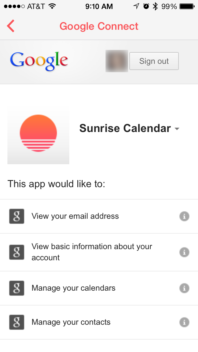 - Asking for access to Google or Facebook calendars without seeing the benefit is a large hurdle to put in front of new users.