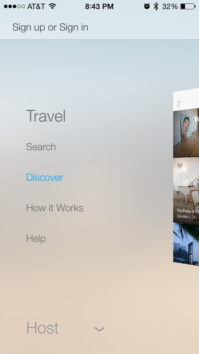 - There are no coachmarks or popovers that get in the way of a user who simply wants to find a place to stay.