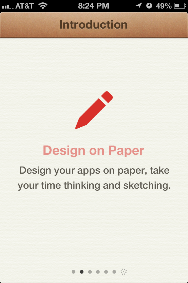 - The first time experience starts with a slideshow of multiple intro screens explaining key features of the app. The concepts they cover are so simple that they probably could have all been captured on a single screen or left for the app itself to explain in-situ.