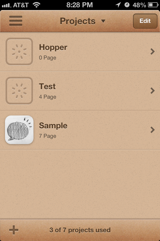 - Things get much better upon exit from the tutorial. The project list is pre-populated with samples to show you what you can build with the app.